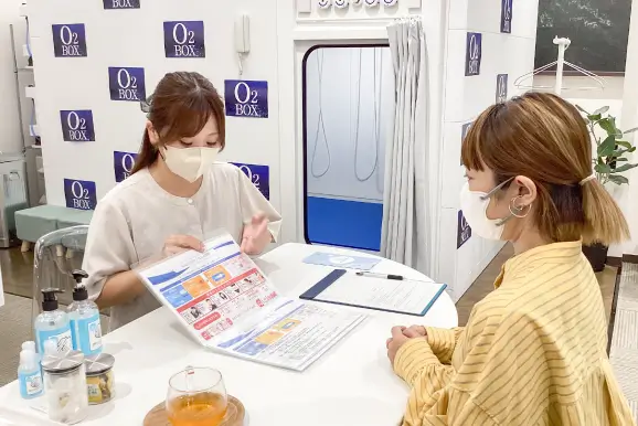 酸素カプセルのご説明や健康状態をお聞きします。そして同意書にご記入していただきます
